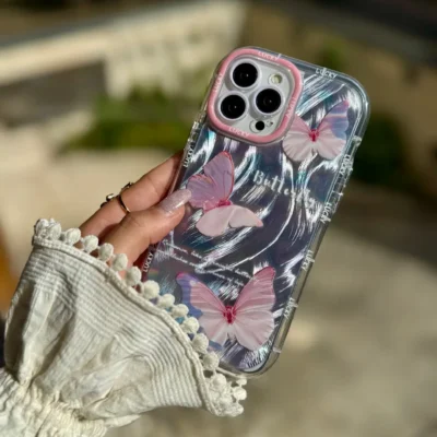 قاب پاپیون صورتی شاین آیفون ، سامسونگ ، شیائومی (کدC2059)