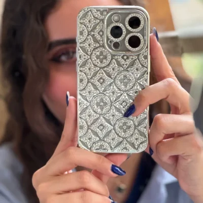 قاب شاینی قلب آینه ای با محافظ لنز رینگی نگینی (کدC1889)